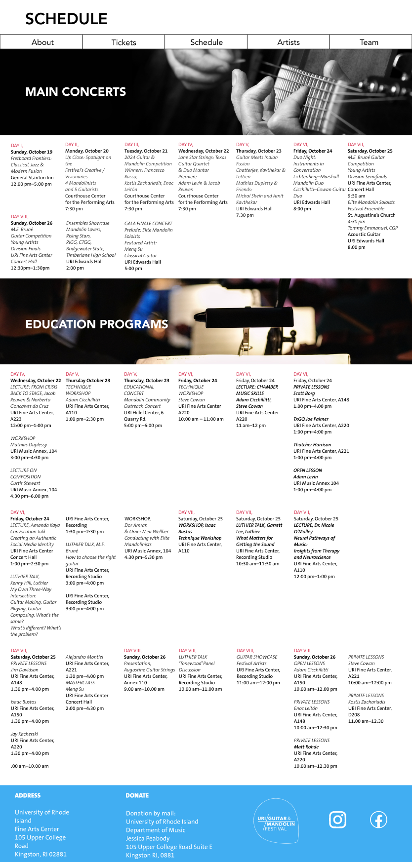 URI Guitar Festival Website Mockup